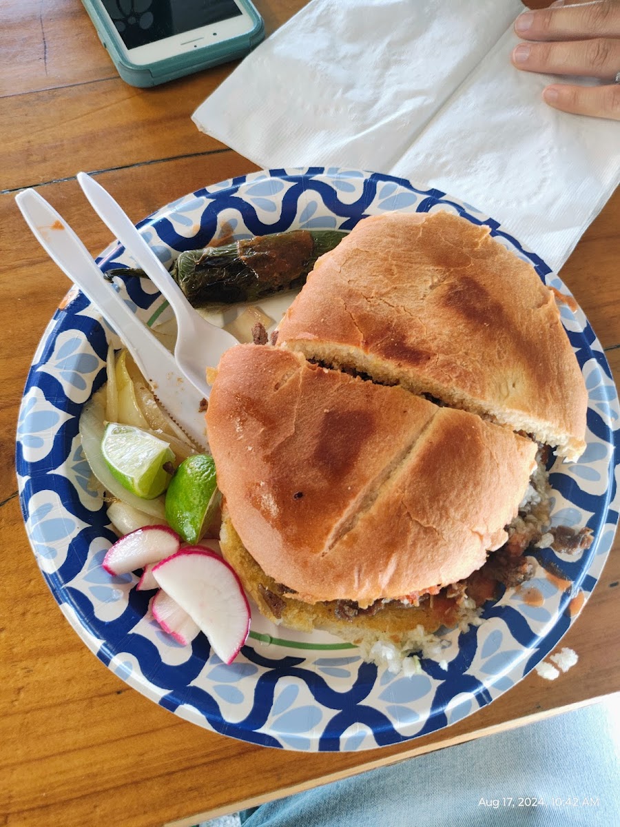 “ This place was a little random spot for me but overall the torta was great and the owner brought my wife and I small cups of consume (broth) from the birria, which was delicious. It's definitely a spot to try ”